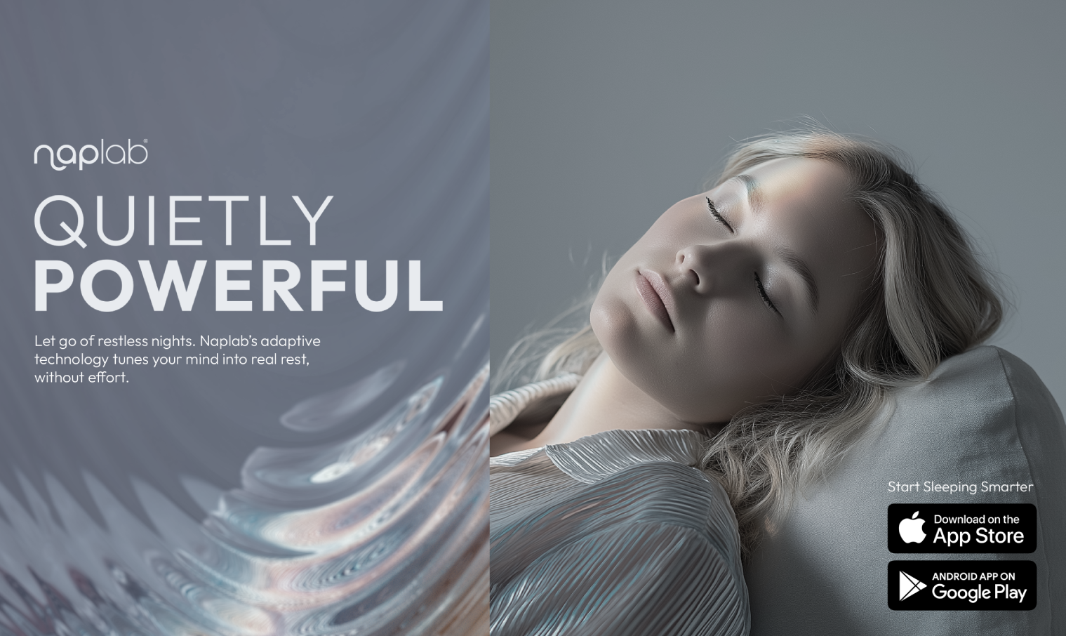 We positioned Naplab as a high-tech solution in the sleep space, powered by data and tailored to individual sleep cycles. In a saturated wellness market, we crafted a brand that feels intelligent, calming, and rooted in science. From tone to visuals, every element is designed to feel personal, intuitive, and quiet by nature. The result is a brand that reflects both the precision of the tech and the emotional need for real rest.