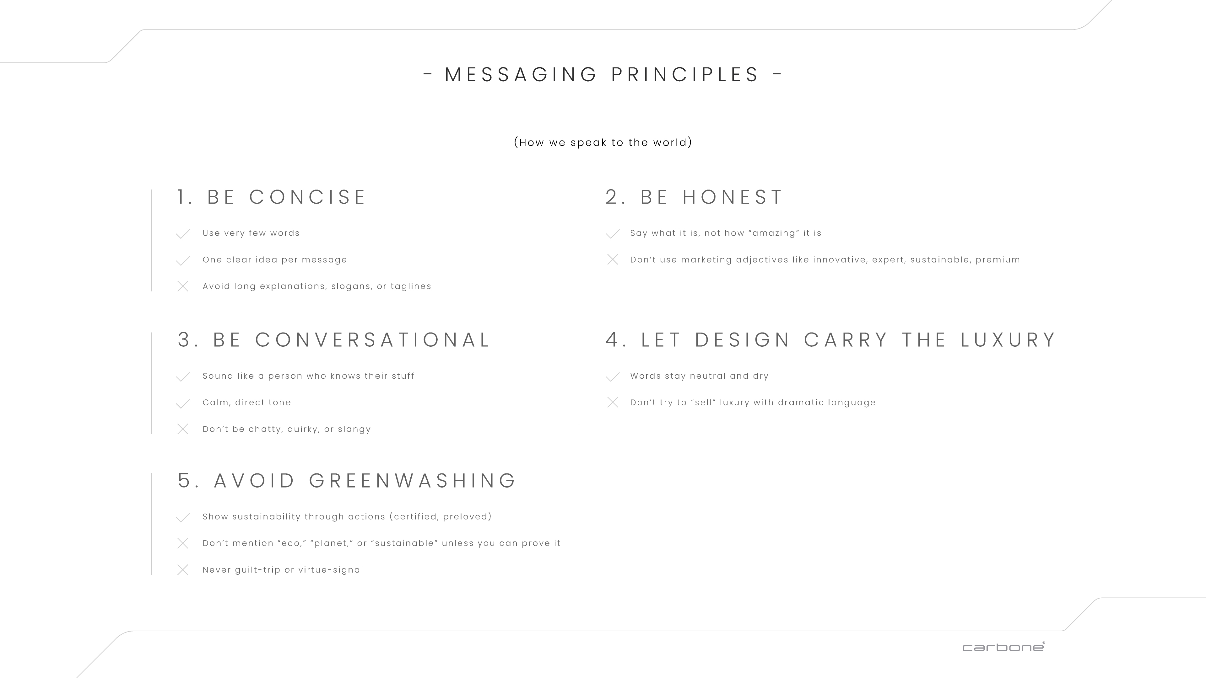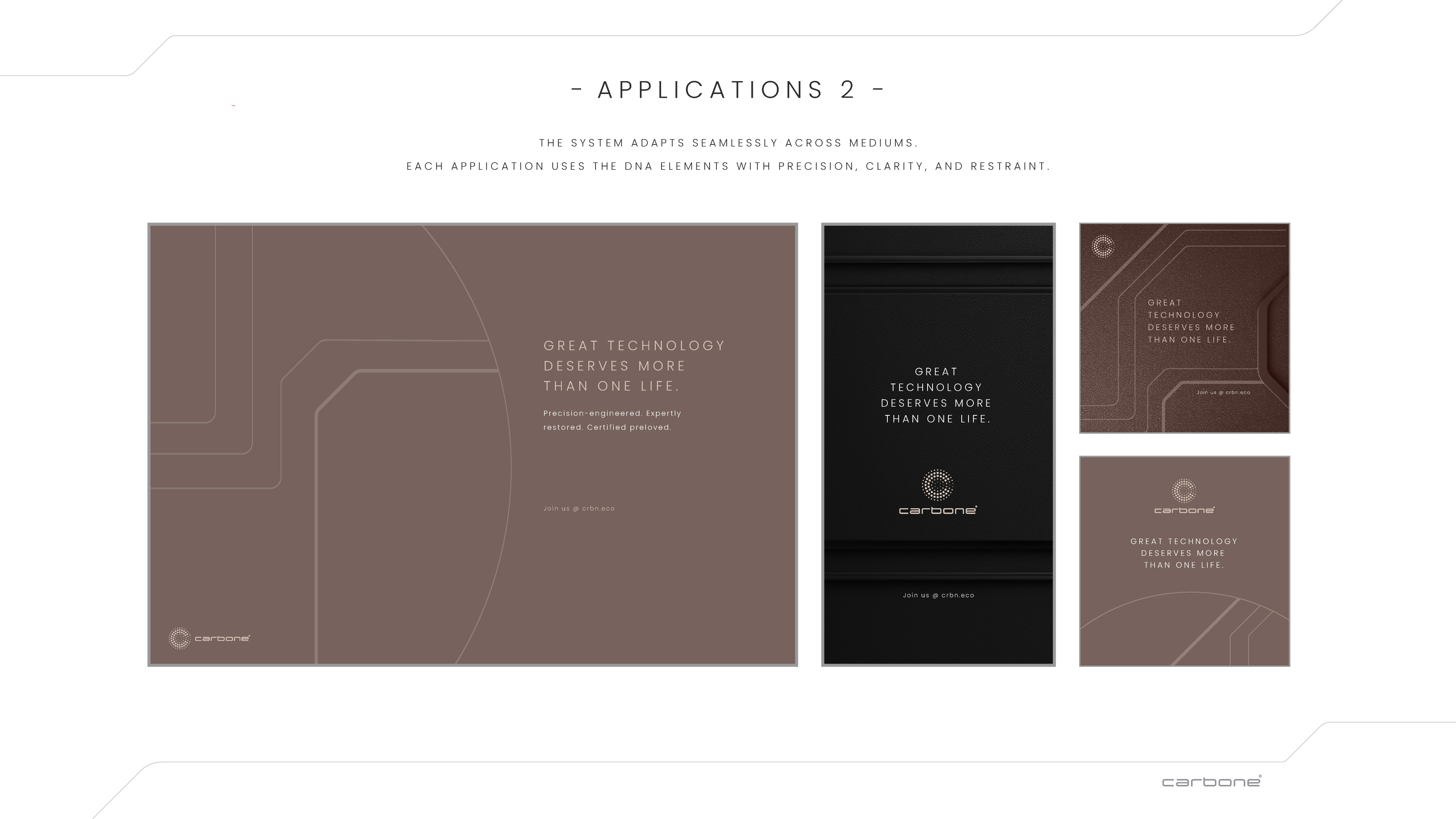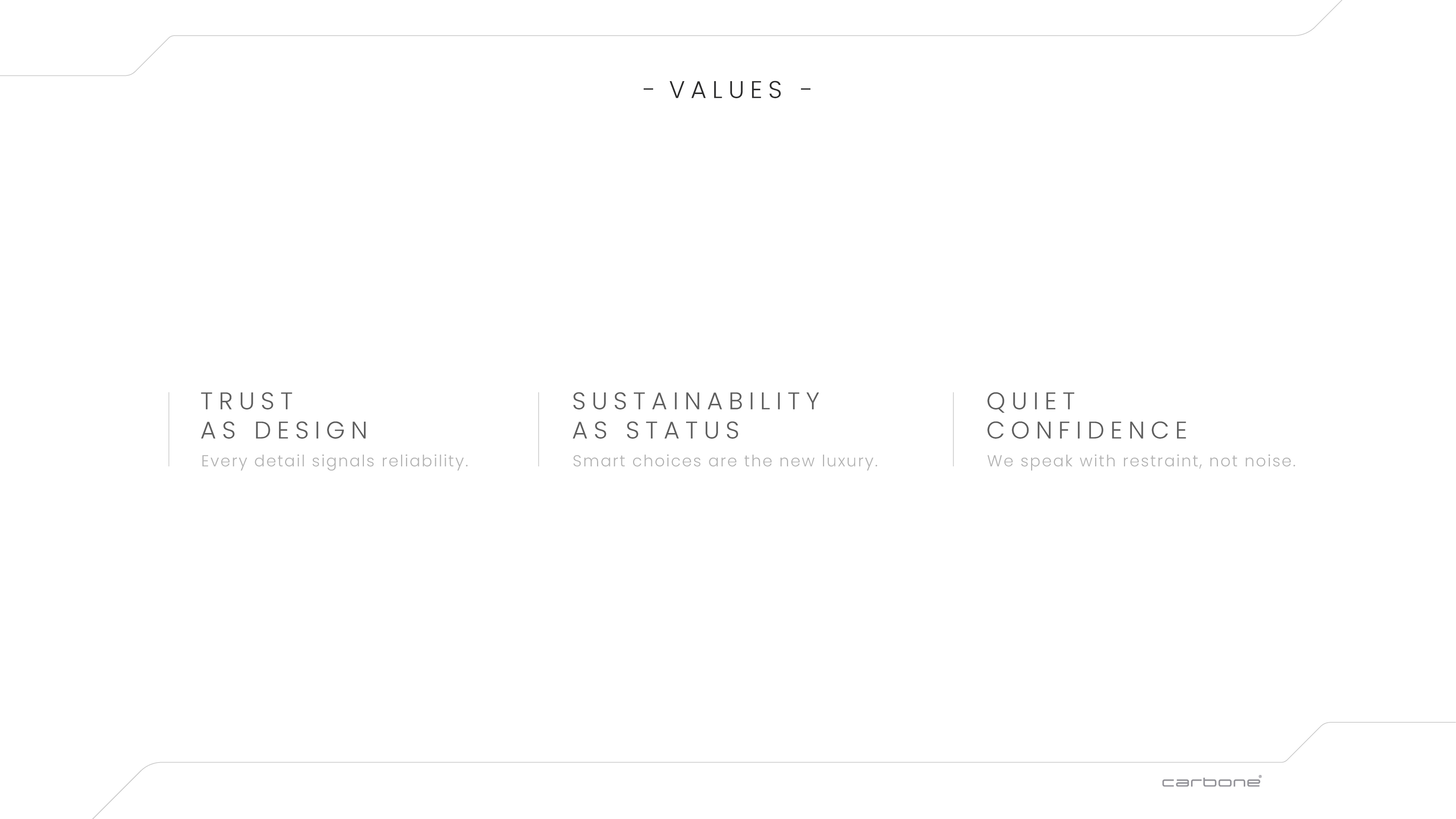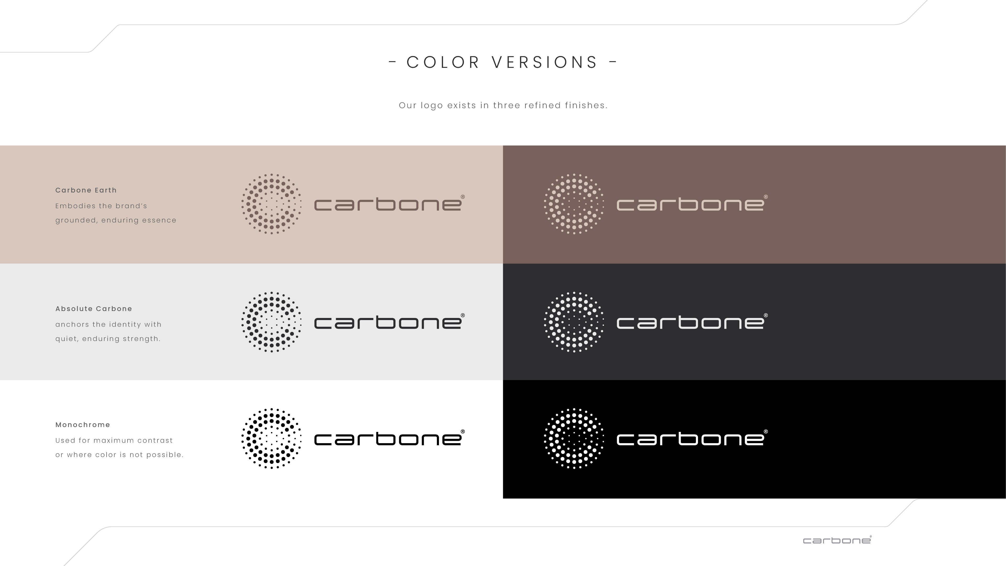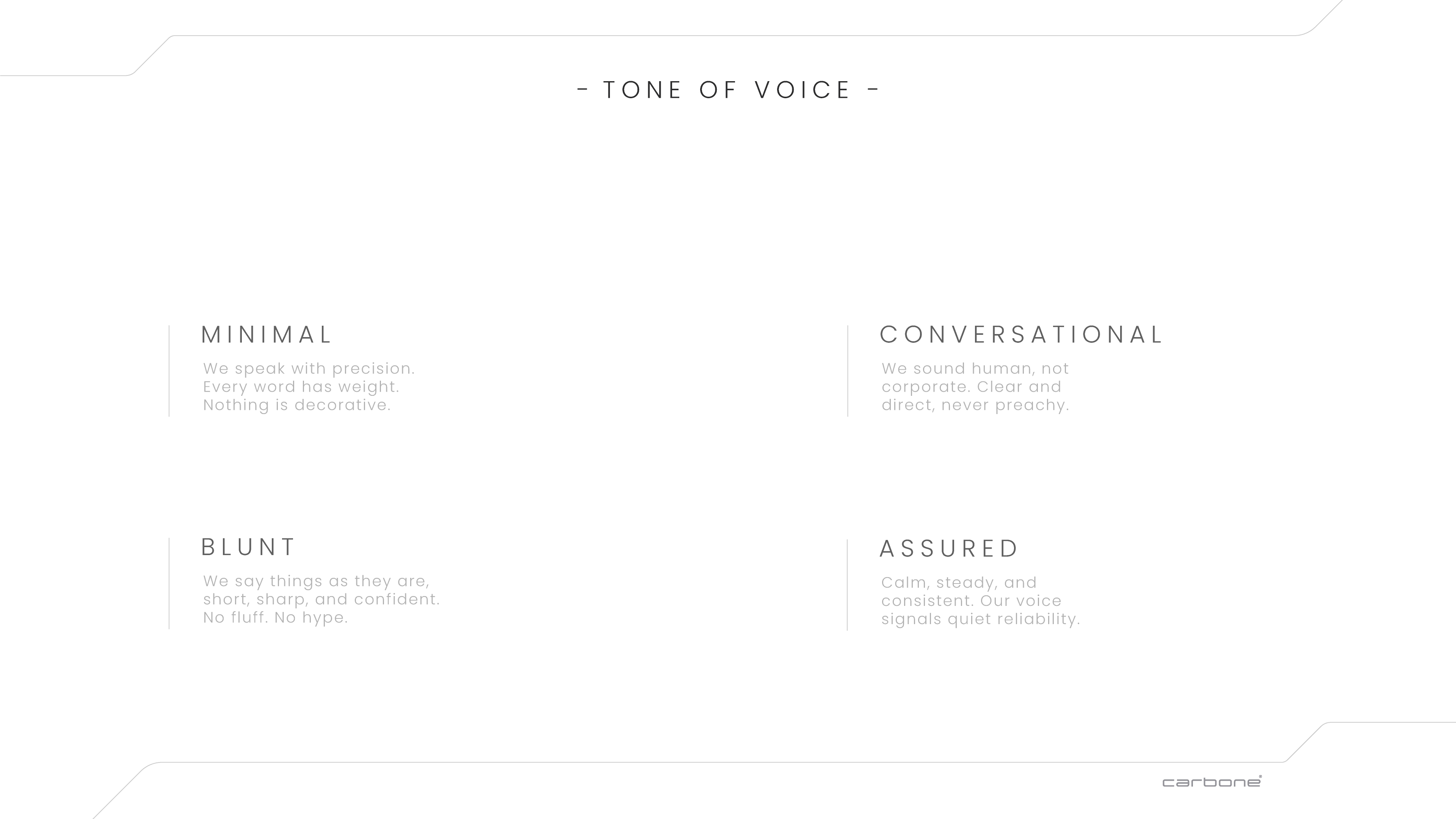 Following in-depth meetings and workshops with the Carbone team, I led the full strategic and visual development of the brand. The process began with defining the audience, brand positioning, and commercial intent, then translating this into a clear brand strategy.