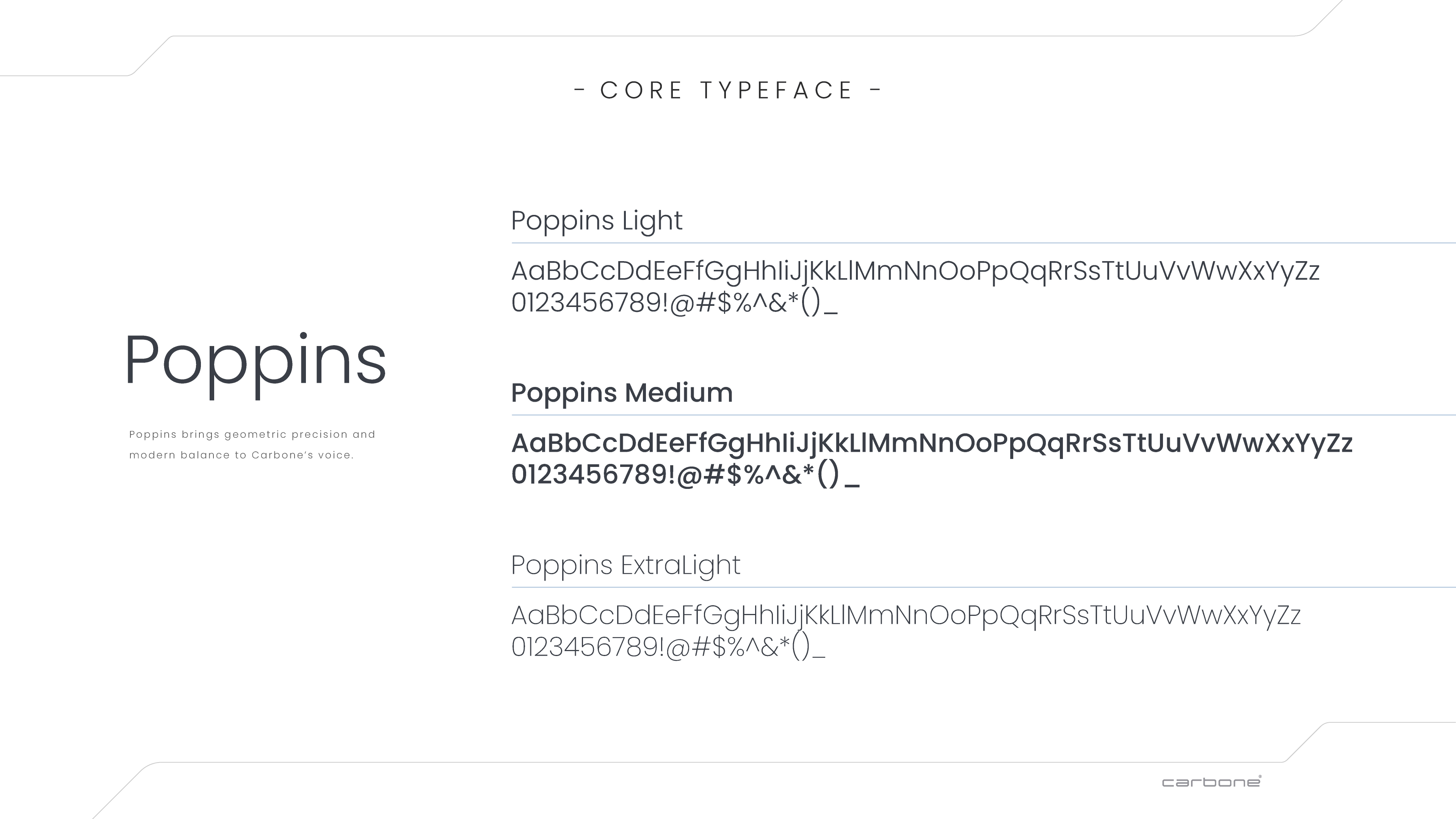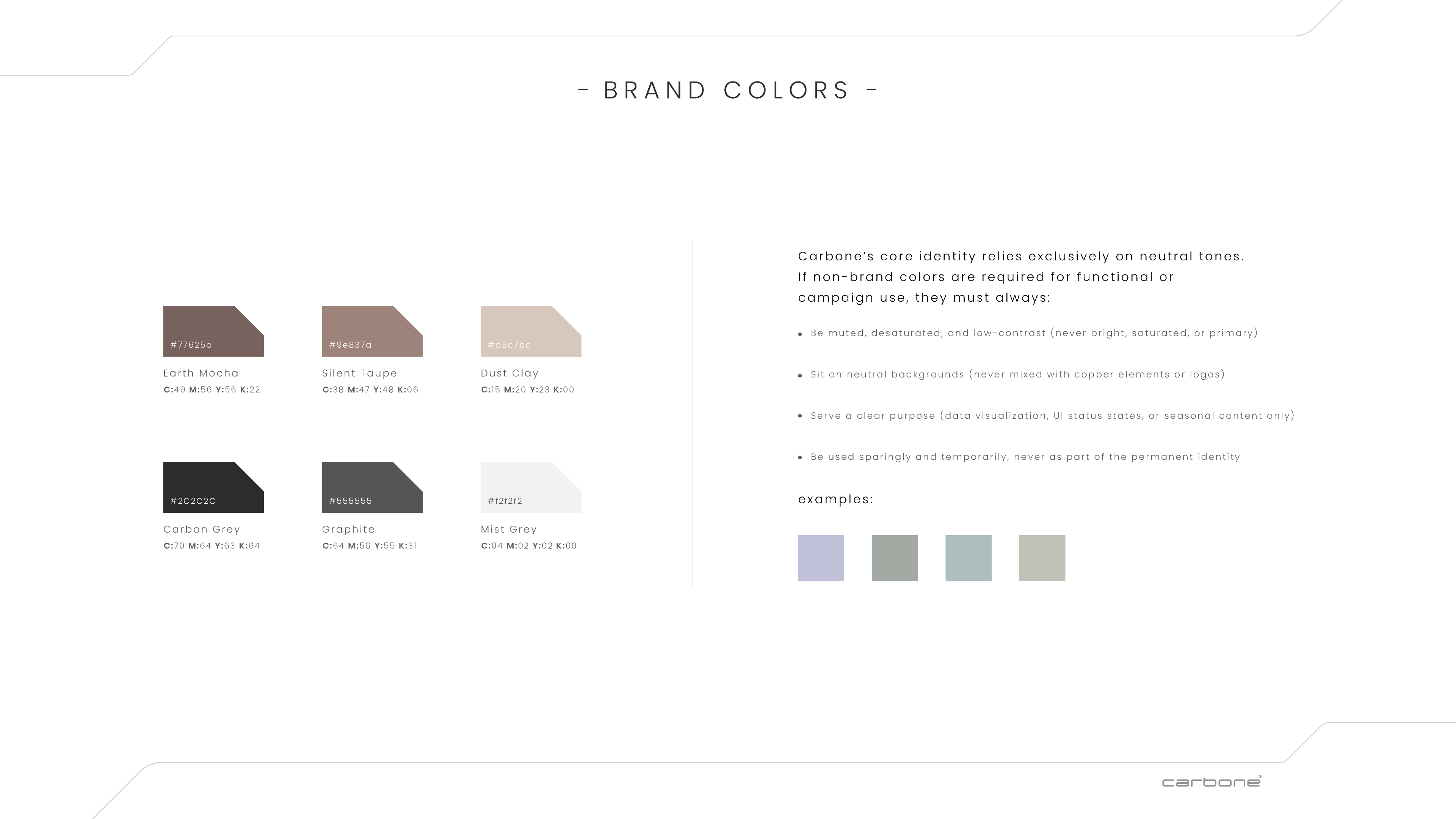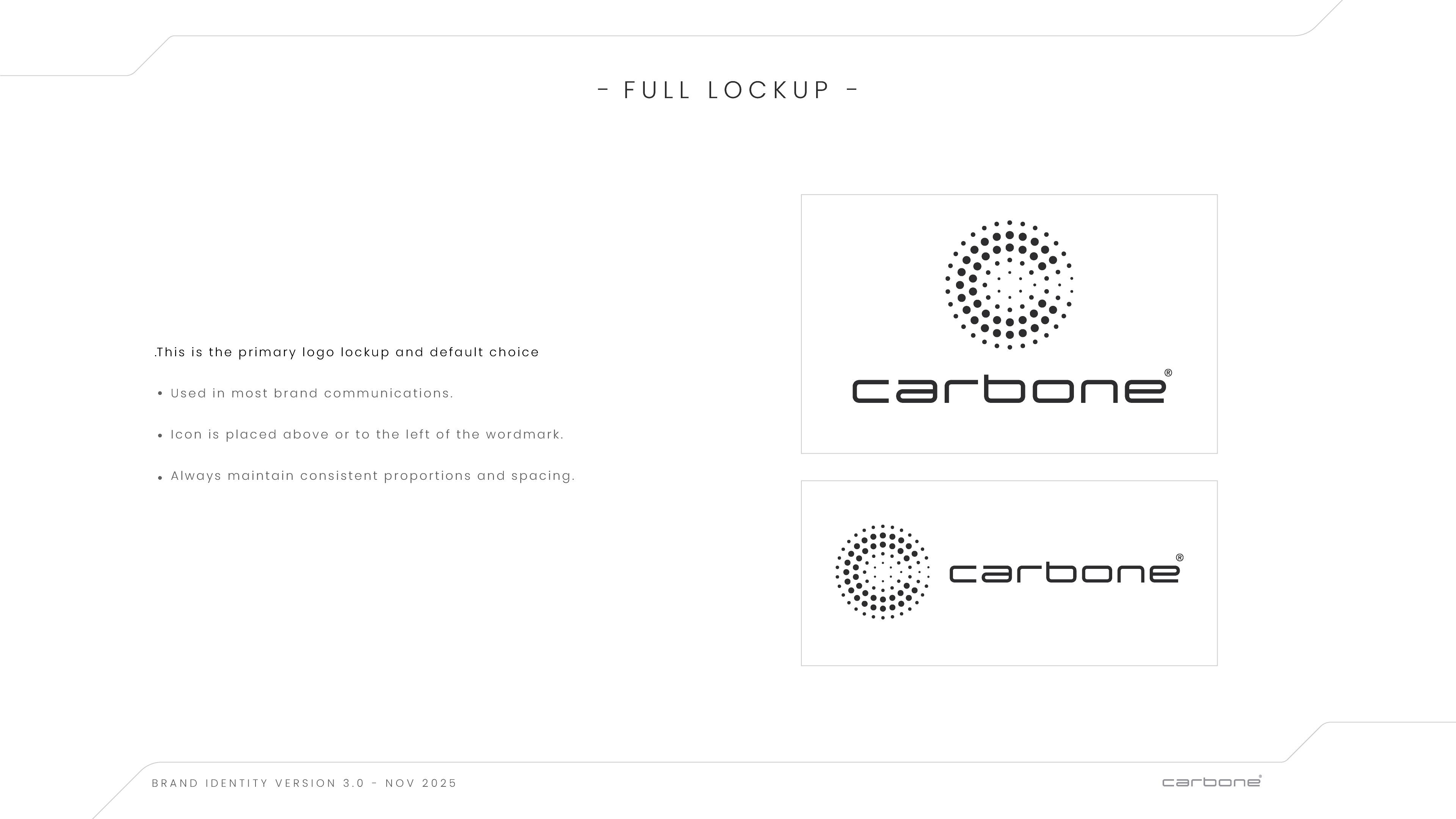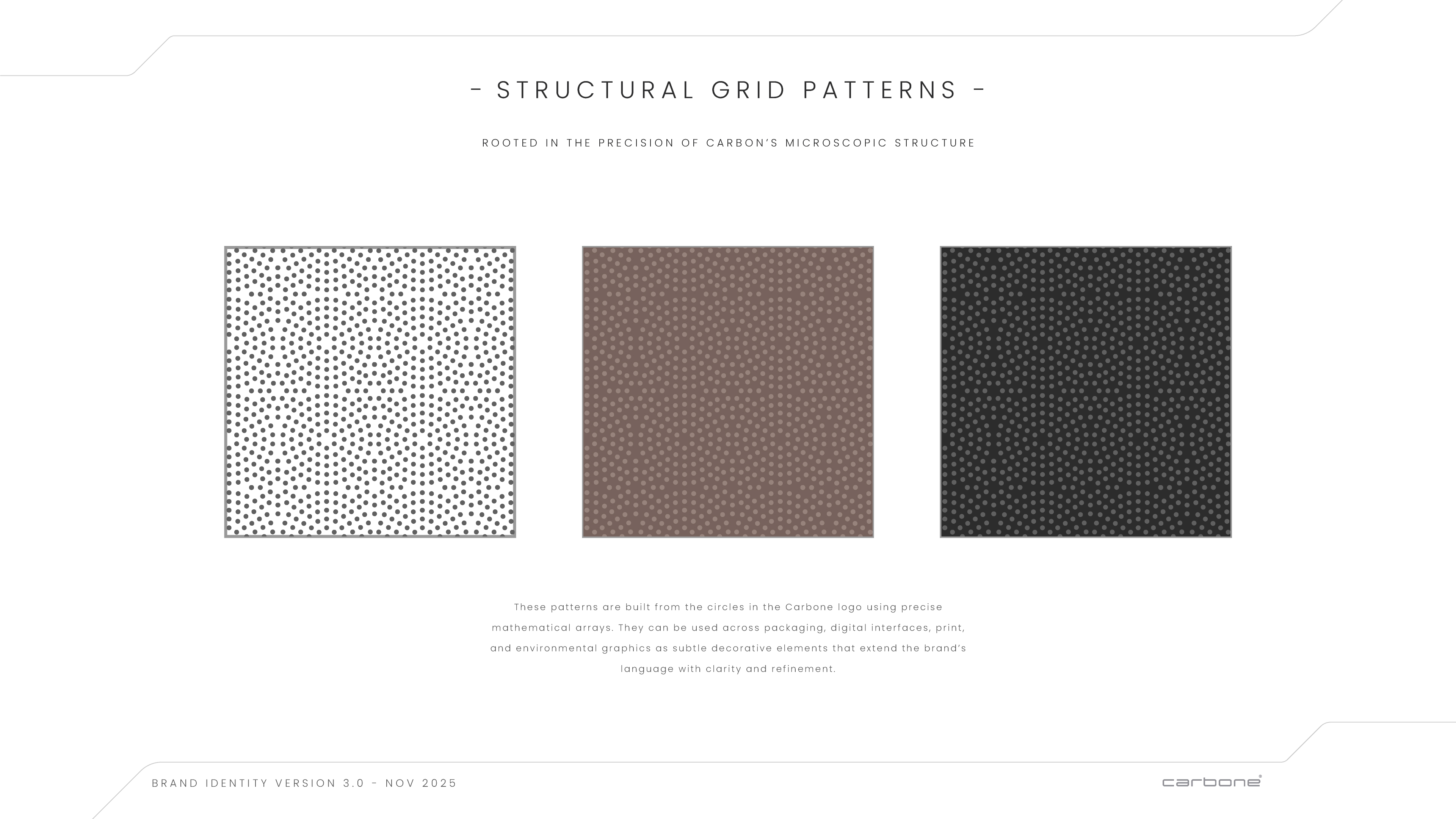 From there, I developed multiple visual directions aligned with the strategy, refined through collaborative selection. I designed the Carbone logo and built a comprehensive brand identity system covering tone of voice, positioning, logo usage, colour palette, typography, and a custom graphic language engineered for consistency across platforms while allowing creative flexibility.
