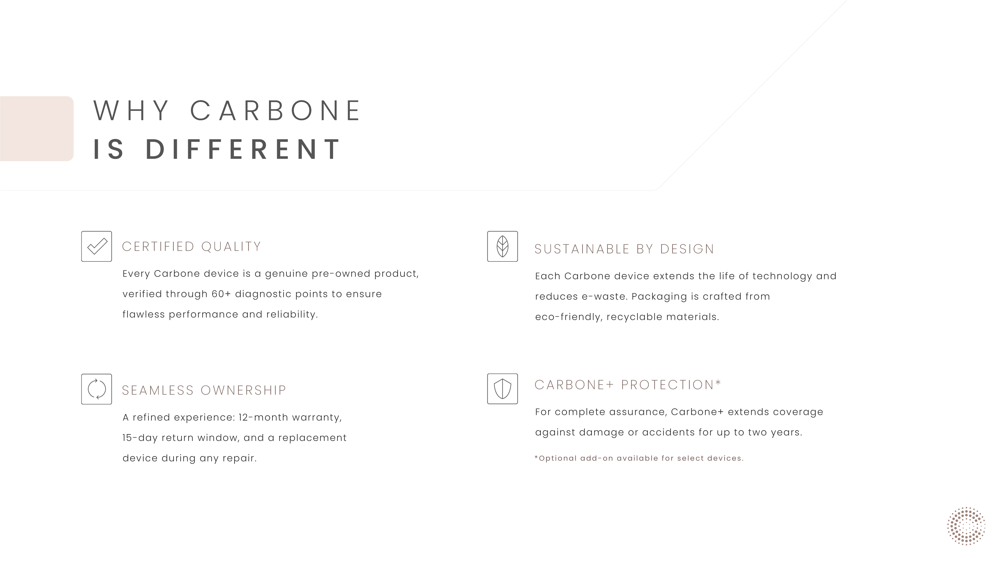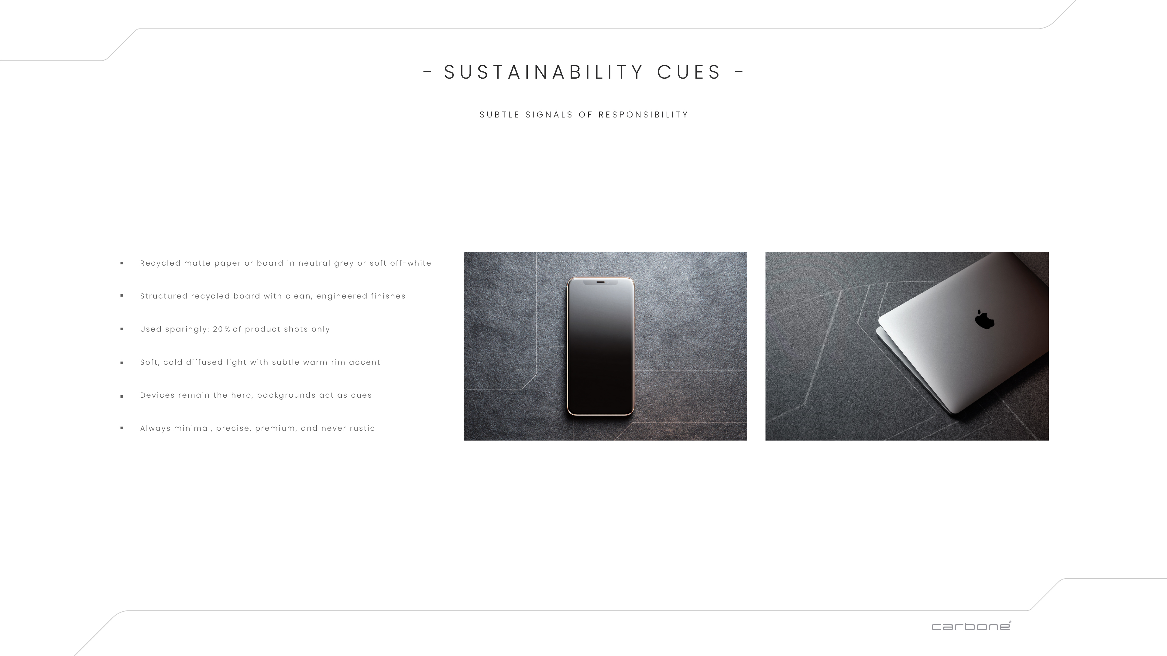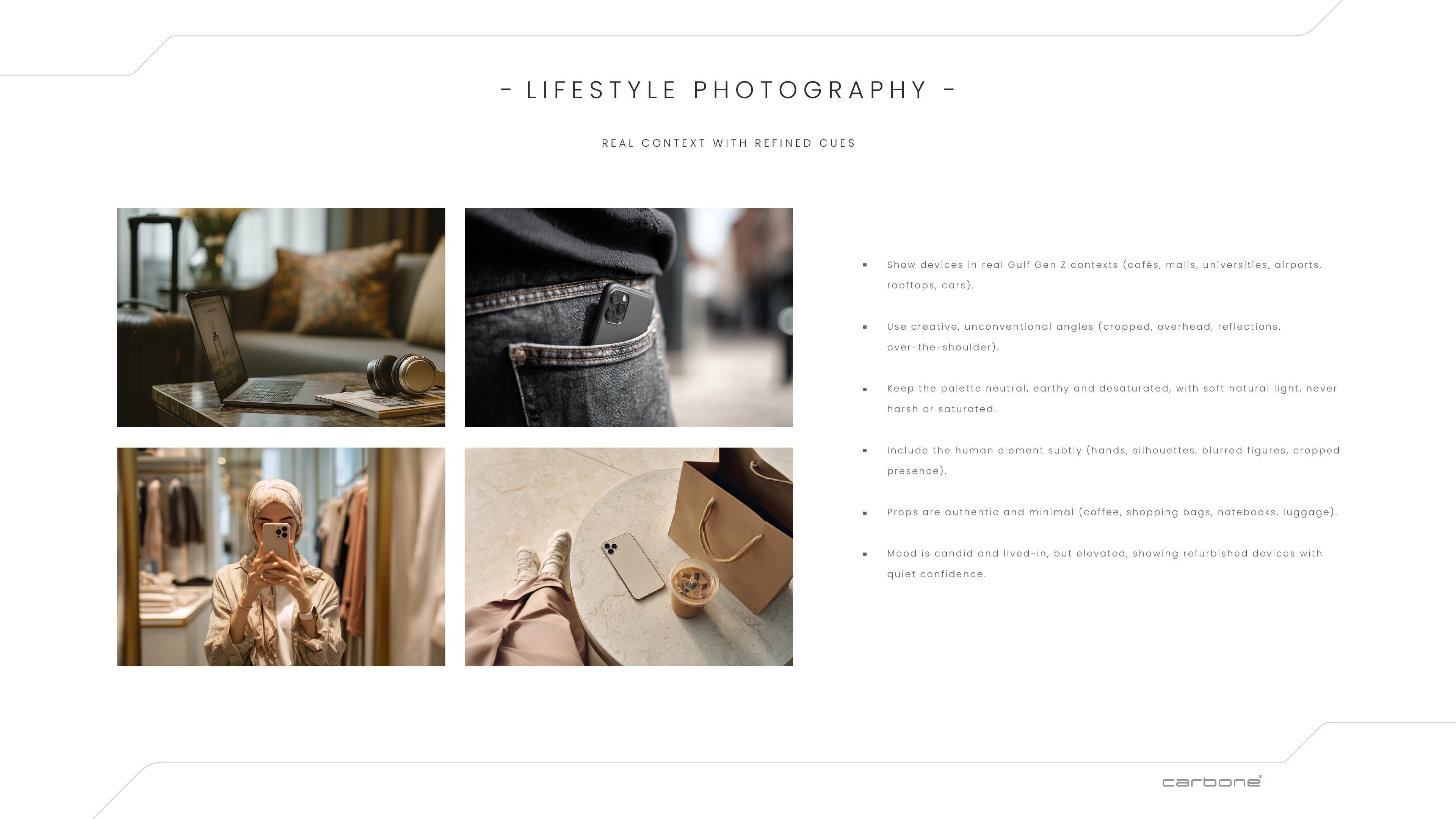 Carbone is a premium circular-tech brand reintroducing high-end devices to the market through a sustainability lens, positioned for a new generation of UAE consumers who value design, performance, and conscious consumption.